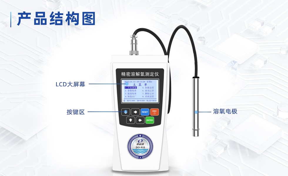 DO-810型便攜式溶氧儀采用超低功耗單片機(jī)測(cè)量和控制,采用熒光法測(cè)量。具有穩(wěn)定可靠、操作簡(jiǎn)單方便等優(yōu)點(diǎn);該儀器能以兩種溶解氧含量表示單位指示測(cè)定結(jié)果,即氧濃度(mg/L)和氧的飽和百分含量(%),此外還同時(shí)對(duì)被測(cè)介質(zhì)的溫度(℃)進(jìn)行測(cè)量顯示。
